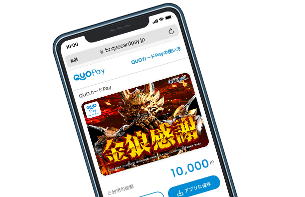 • ・「QUOカードPay」は、カードタイプのQUOカードとは異なるサービスです。カードタイプのQUOカード加盟店ではご利用できない場合があるほか、 カードタイプのQUOカードの残高を移行、チャージすることはできません。